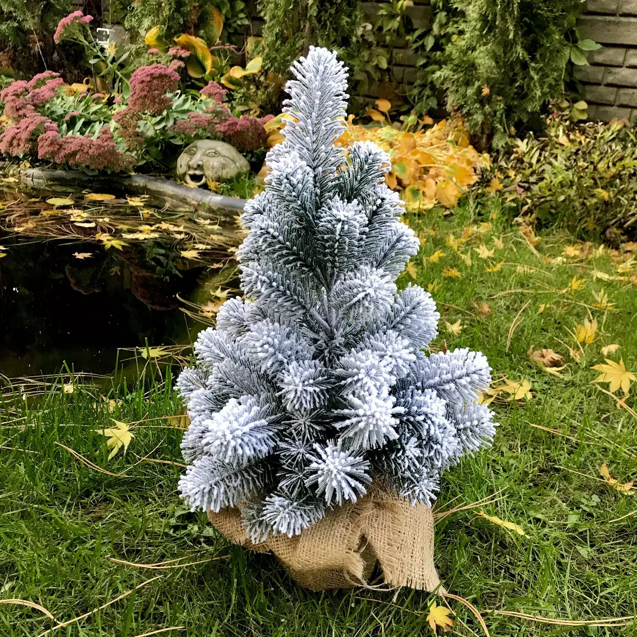 Компактна штучна лита ялинка виглядає ошатно навіть без додаткових прикрас. Всі голочки - литі, точна 3D імітація хвої живої ялинки. Встановлена у горщик, прикрашений мішковиною, з обважнювачем всередині - для захисту від перекидання. Об'ємне густе напилення на ялинці реалістично імітує сніг, який тільки що впав на гілки пухнастими пластівцями. Матеріалом розпилення є натуральна бавовна, він екологічний і не має запаху, безпечний для дітей і дорослих. Відмінний декор для дитячої кімнати, офісного столу, оформлення вітрини магазину або кафе. Може стати чудовим новорічним подарунком.