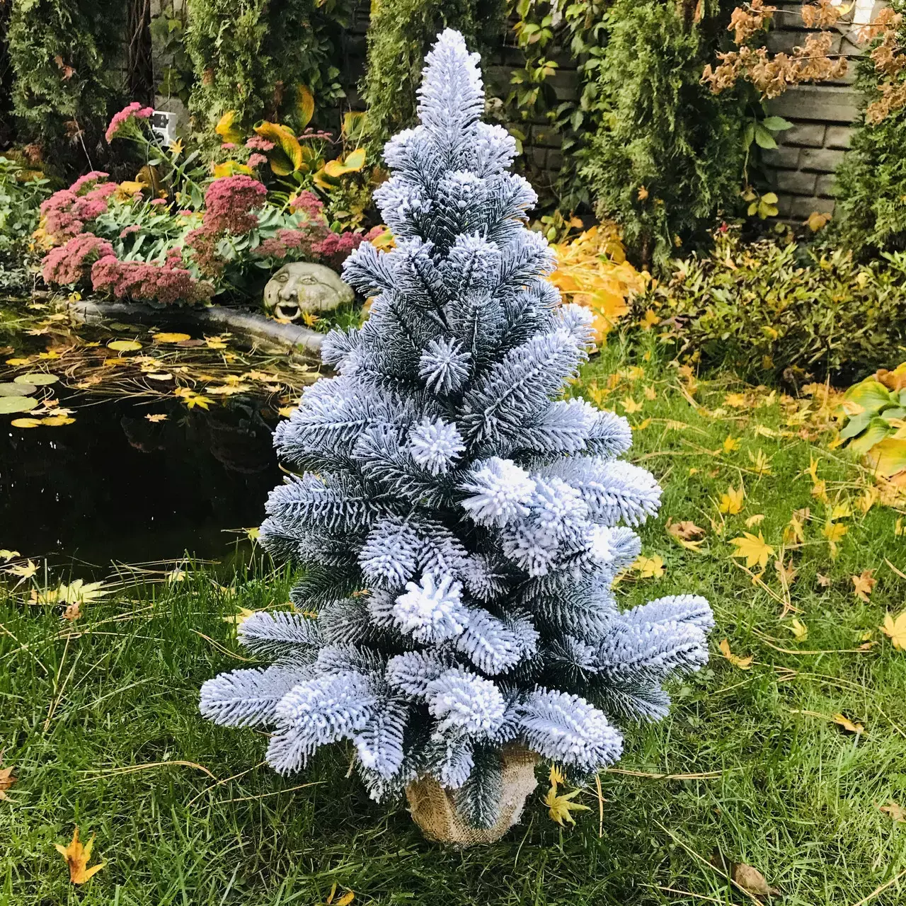 Компактна штучна лита ялинка виглядає ошатно навіть без додаткових прикрас. Всі голочки - литі, точна 3D імітація хвої живої ялинки. Встановлена у горщик, прикрашений мішковиною, з обважнювачем всередині - для захисту від перекидання. Об'ємне густе напилення на ялинці реалістично імітує сніг, який тільки що впав на гілки пухнастими пластівцями. Матеріалом розпилення є натуральна бавовна, він екологічний і не має запаху, безпечний для дітей і дорослих. Відмінний декор для дитячої кімнати, офісного столу, оформлення вітрини магазину або кафе. Може стати чудовим новорічним подарунком.