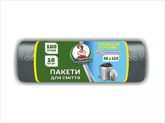 160л/10шт СУПЕР МІЦНІ Пакет для сміття ТМ Гаряча Господарка (90*110см) 20 шт./уп УБ17-10-27