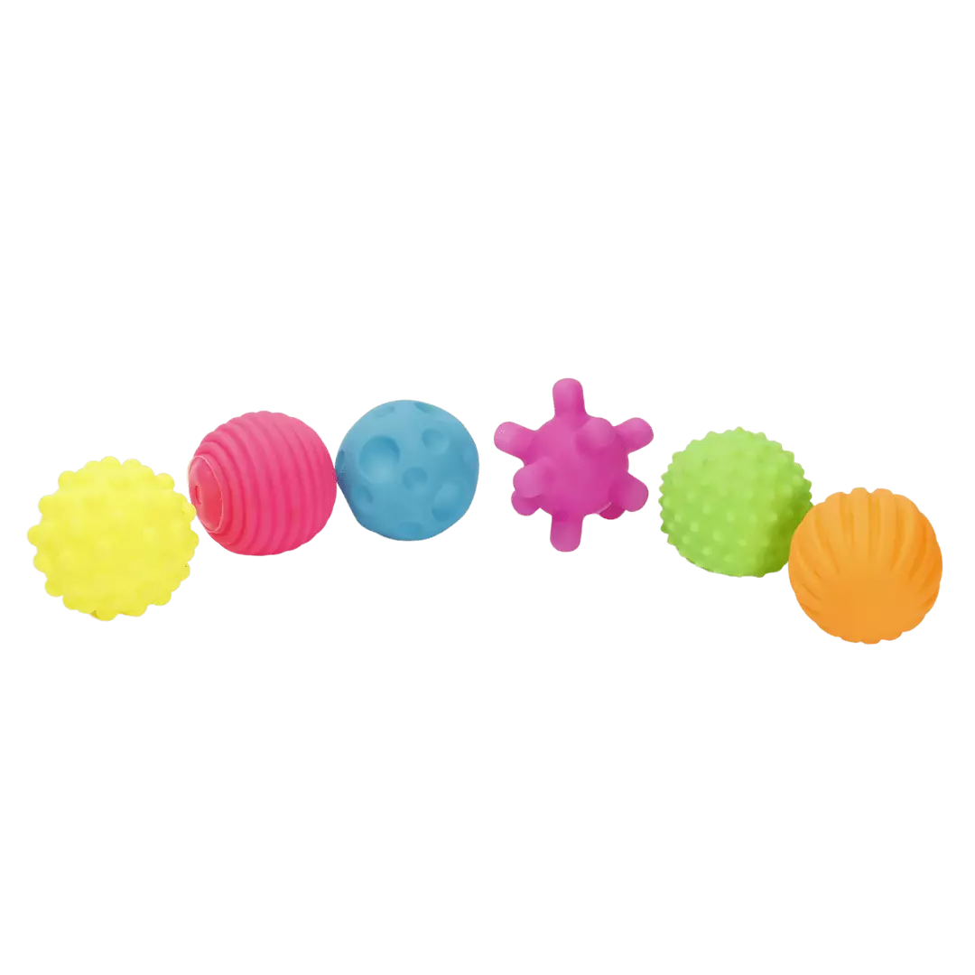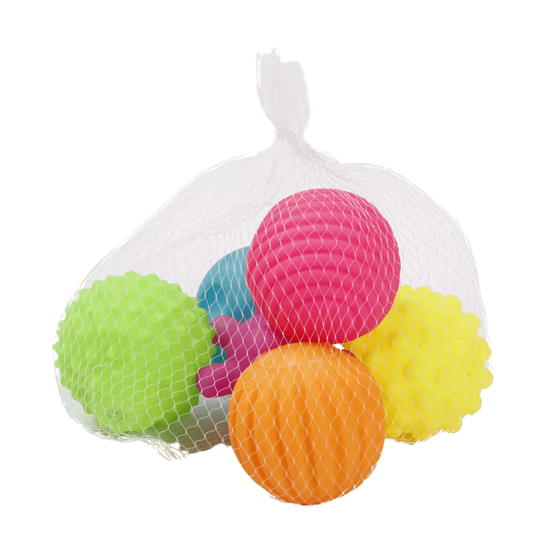 Призначені для дітей від 6 місяців. Різнокольорові м'ячики з різною текстурою для гри і купання. Матеріал: 100% PVC. Набір складається з 6-ти м'ячиків різної форми і текстури. Можна використовувати для розвитку дрібної моторики, тактильних відчуттів і вивчення кольорів. Чудо підійдуть для гри у воді. Перед використанням промити в теплій воді додаванням нейтрального миючого засобу, прополоскати. Увага! Не залишайте дитину без нагляду в воді.