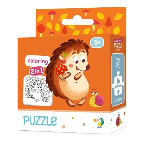 Пазл Їжачок, 2 в 1, 16 елементів, Dodo Складання пазла сприяє розвитку дрібної моторики, фантазії, терпіння та посидючості. З зворотного боку пазла нанесений контурний малюнок, щоб дитина могла самостійно розфарбувати елементи. Рекомендований вік: від 3 років Розмір пазла: 10 x 10 x 5 см Розмір упаковки: 22 x 22 см Розмір одного елемента: 5,5 x 5,5 см Матеріал: картон