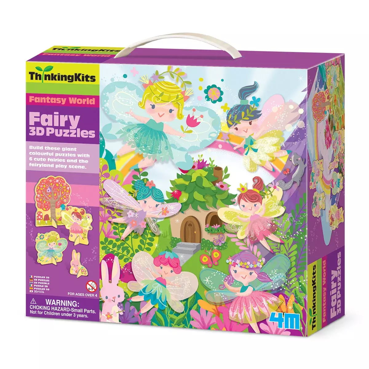Чарівна країна фей чекає на вас! Зберіть шість барвистих фігурок із 3D-пазла від 4M у вигляді фей, їхнього друга-зайчика і дерева. Для ігор із фігурками у наборі є великий фоновий пазл розміром 49 х 49 см із зображенням квітучого поля, будиночка фей і веселки. 3D-пазл від 4М буде цікавий дівчатам дошкільного віку від 4 років. Ігри з пазлами сприяють емоційному благополуччю, розвитку фантазії, творчих здібностей, колірного сприйняття, логічного мислення, винахідливості, тренують дрібну моторику. Набір пазлів підходить для навчання дітей за системою Монтессорі. У наборі з серії Thinking Kits ви знайдете схематичний кольоровий буклет. Шість фігурок мають барвисті зображення з обох сторін. Фоновий пазл складається з дев'яти фрагментів. Розташовуйтеся на великому столі або підлозі та грайте із задоволенням! У наборі Аркуші з фрагментами 3D-пазла – 2 шт. Фрагменти класичного пазла – 9 шт. Інструкція – 1 шт.