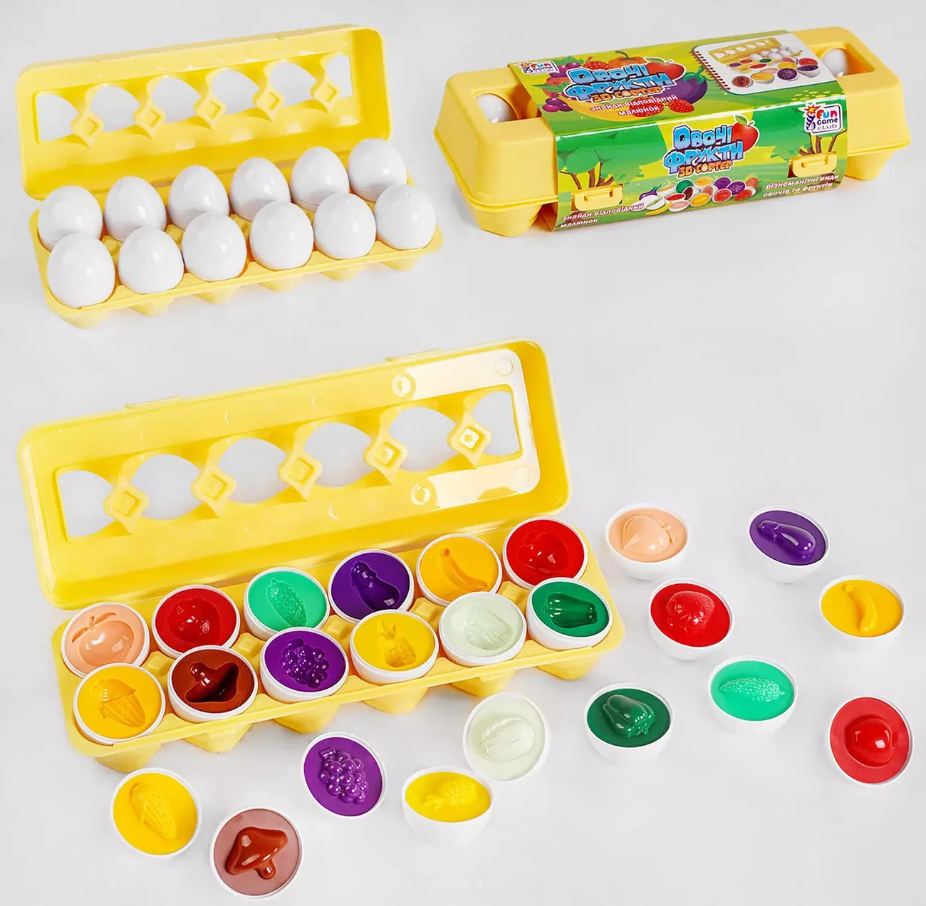 3D сортер "Овочі та фрукти" 48666 (18) "4FUN Game Club", "Яєчний лоток", 12 штук в коробці