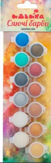 Акрилові фарби розроблені за спеціальною екологічною гіпоалергенною формулою: вони на водній основі, повністю безпечні, без різкого запаху.У наборі: по 2,5 мл - 12 кольорів: перлина, срібло, платина, чорна перлина, золото, червоне золото, бронза, мідь, червоне вино, римське золото, смарагд, блакитне сяйво Для дітей старше 3 років. При розведенні водою вони легко лягають на будь-яку поверхню за допомогою пензлика, швидко висихають, зберігаючи при цьому яскравість кольору, і плавно наносяться один на одного тонкими шарами. Даний художній набір прекрасно підходить для учнів художніх шкіл. Акрилові фарби дуже популярні серед початківців дизайнерів і художників. Вони надають картині вишуканий відтінок. Прекрасно підходять для будь-яких видів оформлювальних робіт.