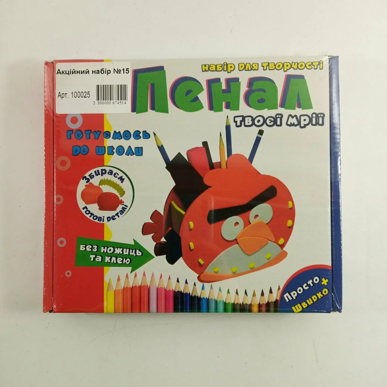 В набір входить : Пенал своїми руками "Зла пташка" 9016 і пачка кінетичного піску.