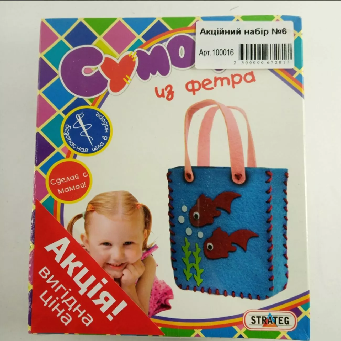 В набір входить : Сумочка з фетру "MIX 6 видів" 110,112,113,114,123 і Набір для творчості та розваг 504 Фігурна Крейда "Мультфільми"
