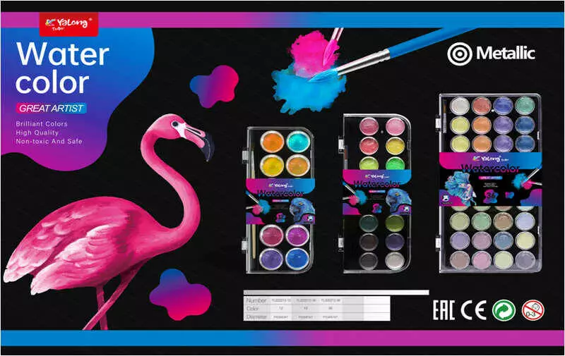 Акварельні фарби C 62070 (144) 12 кольорів, металік, пензлик, в плівці
