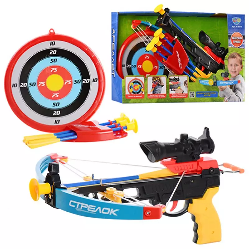 Арбалет M 0010 стріли на присосках, приціл, лазер, мішень, сагайдак, кор., 46,5-29-7 см.