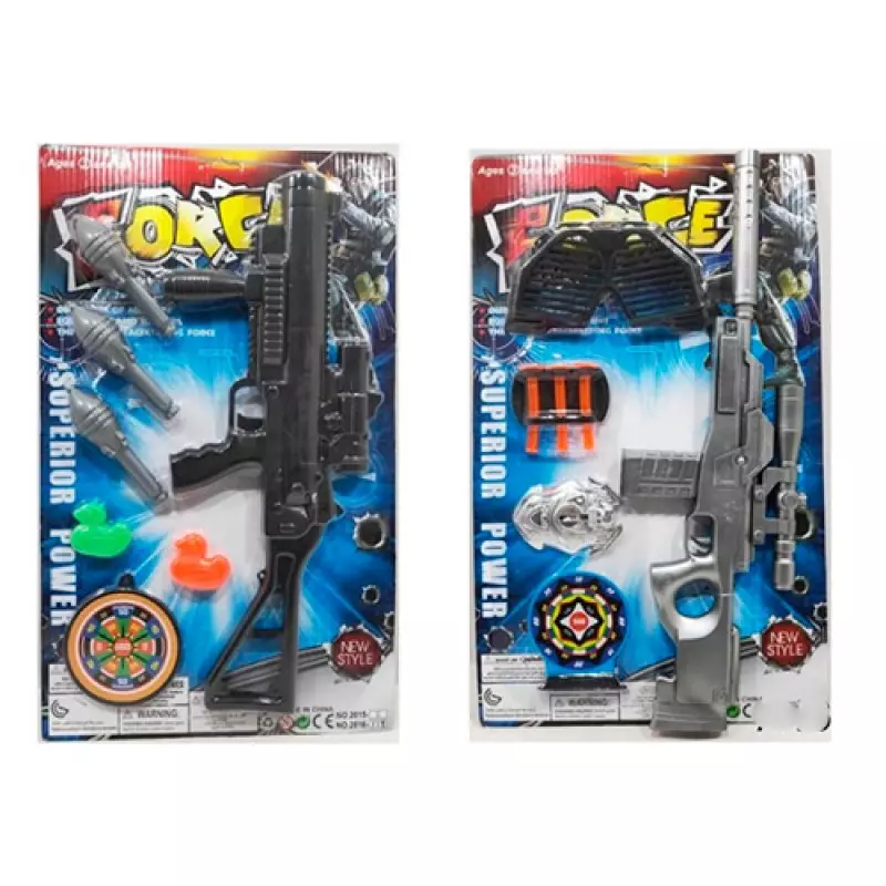 Іграшковий набір поліцейського (військового) стане чудовою знахідкою для маленьких відважних захисників та правоохоронців. Автомат виготовлений із безпечного пластику, добре деталізований. В комплекті: - іграшкова зброя; - кулі на присосках або протитанкові набої (залежить від виду) 3 шт.; - мішень; - Ігрові аксесуари. Довжина дитячої зброї: 42 см; Упакування: планшет; Вікова категорія: 3+