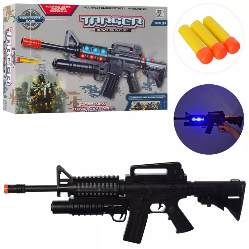 Автомат 2123C трещітка, м'які кулі 3шт., муз., світло, бат., кор., 35-23,5-5см.