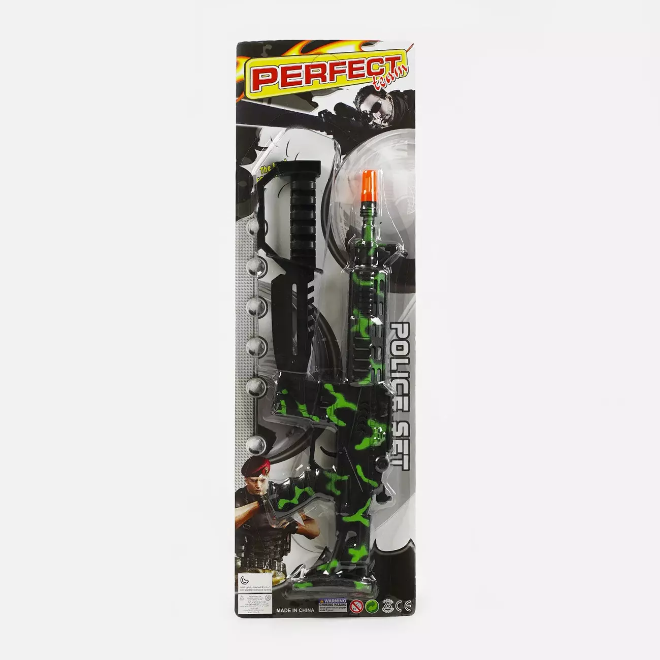 Сучасний автомат з механічним принципом роботи - ідеальна іграшкова зброя для відтворення захопливих сюжетів! Легка і безпечна, вона не здатна заподіювати шкоду під час гри. При натисканні на курок, відтворюється звук стрільби, який зробить гру більш реалістичною, і головне - цілком безпечною. Особливості: - іграшковий автомат з механічним принципом роботи; - зручні рукоятка та м’який курок, який не потребує сильного натискання; - при натисканні на курок відтворюється характерний звук стрільби; - до комплекту входить військовий ніж (цілком безпечний); - виконаний з первинного пластику, який відрізняється міцністю; - відрізняється легкою вагою.