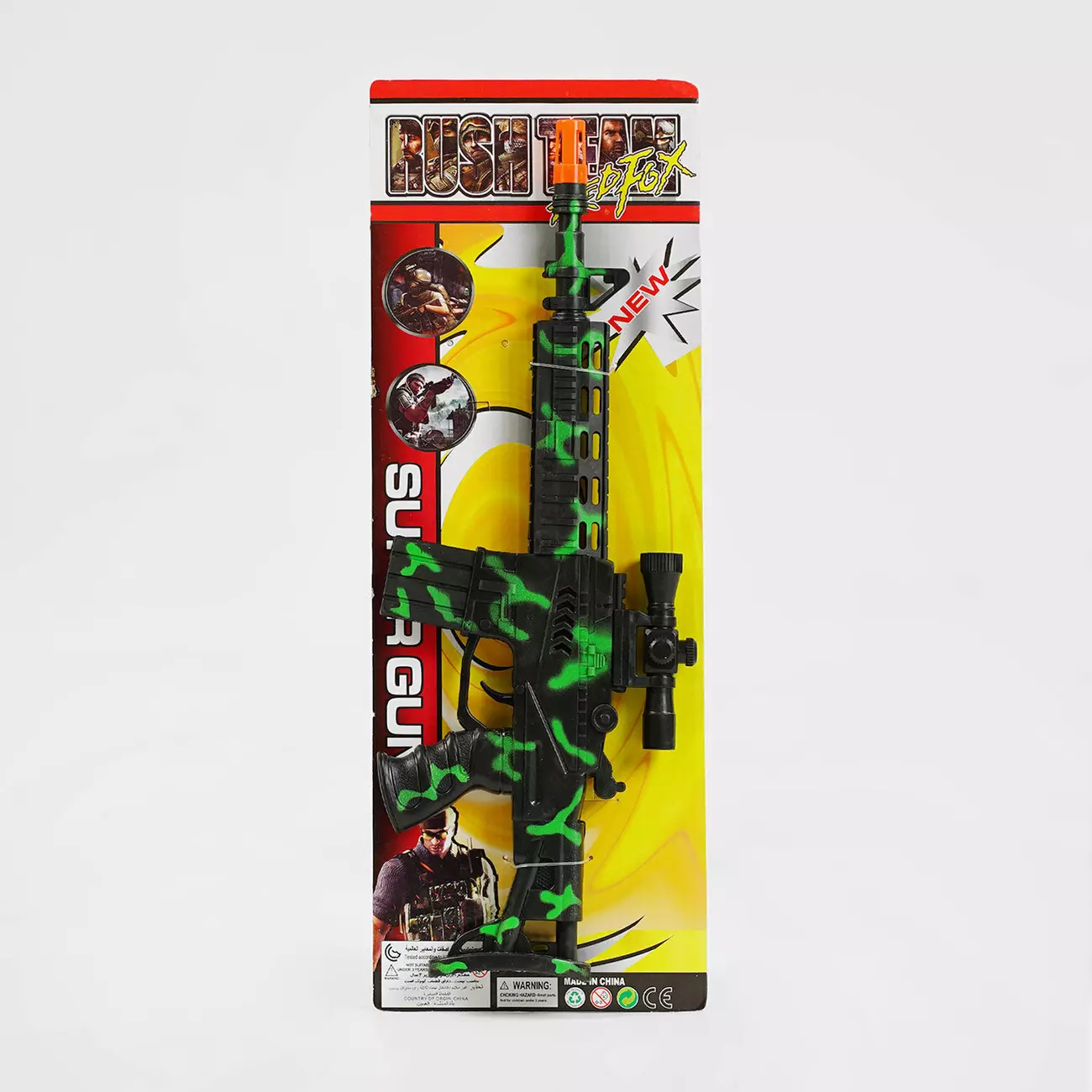 Сучасний автомат з елементами маскування - найбажаніший подарунок юним прихильникам військових сюжетів. Безпечна іграшкова зброя має механічний принцип роботи та не потребує заряду патронами. При натисканні на курок, відтворюється звук стрільби, який зробить гру більш реалістичною, і головне - цілком безпечною. Особливості: - іграшковий автомат з механічним принципом роботи; - зручні рукоятка та м’який курок, який не потребує сильного натискання; - при натисканні на курок відтворюється характерний звук стрільби; - виконаний з первинного пластику, який відрізняється міцністю; - відрізняється легкою вагою.