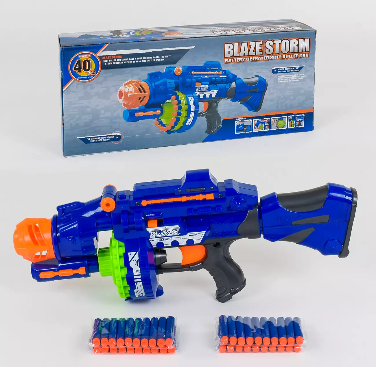 Бластер 7051 - це класна іграшка, яка точно буде до вподоби будь-якому хлопчикові. У комплекті з потужною зброєю ти знайдеш 40 м'яких куль, що дозволяють тренувати влучність, твердість руки та концентрацію на поставленій меті. Гра з автоматом 7051 - це абсолютно безпечна забава, тому батьки можуть спокійно залишати дитину наодинці з іграшкою. Завдяки потужному пусковому механізму наш автомат буде запускати м'які патрони досить-таки далеко, що значно розширює його ігрові можливості. В магазин автомата вміщається 20 патронів. Пусковий механізм працює від 6-ти батарейок типу "АА" (не входять в комплект).