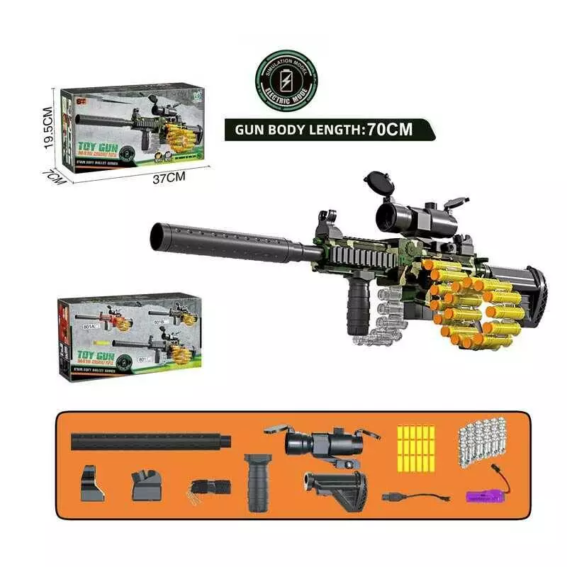 Автомат 801 B (36/2) 18 м’яких патронів з присосками, кулеметна стрічка, глушник, оптичний приціл, акумулятор 3,7 V, вібрація, у коробці