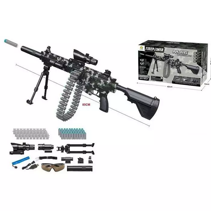 Автомат M626-1 акум., пріцел, м'які кулі-присоски 30шт., лазер, USB,окуляри,світло,кор.,42-25,5-14см