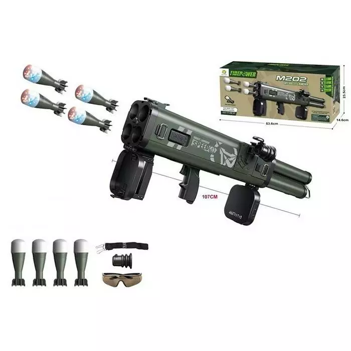 Автомат M628 стріляє м'якими кулями/гранатами 4шт., окуляри, світло, бат.(табл.),кор.,54-23,5-14,5см