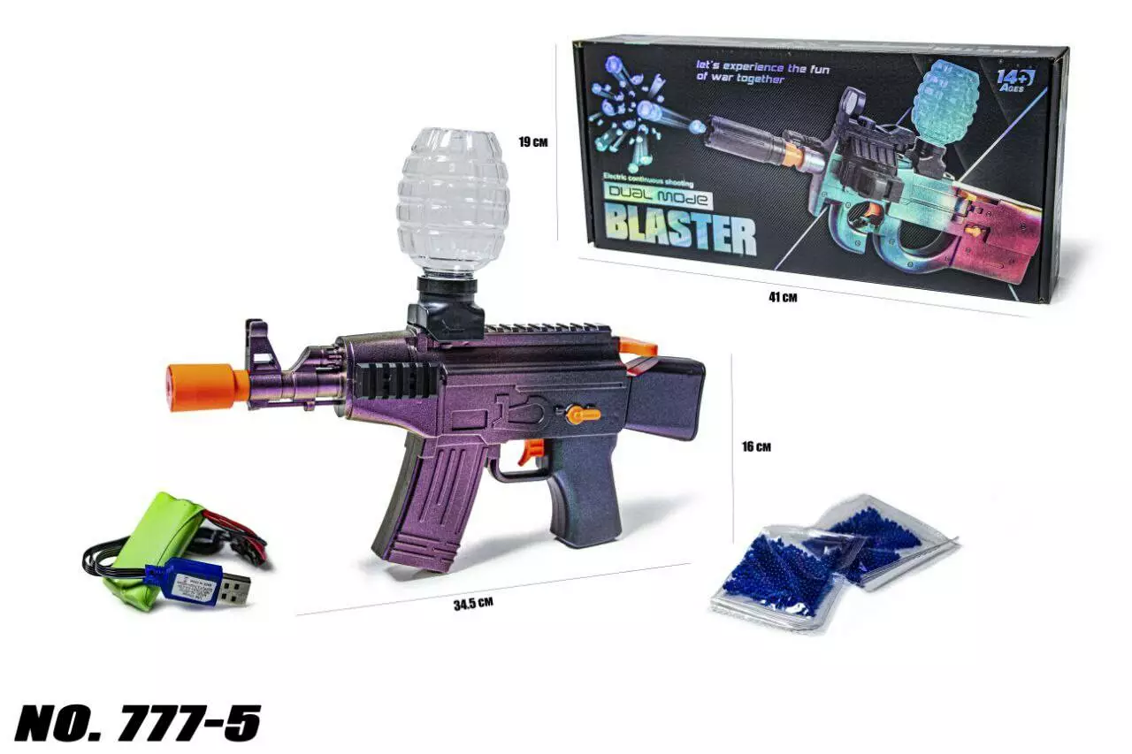 <p>Эта игрушка, которая может стрелять биоразлагаемыми гелевыми шариками, которые лопаются при ударе.<br /><br /> Лучший выбор для игр на свежем воздухе. Гелевый автомат может стать отличной игрушкой для детей, а также для взрослых, а также отличным развлечением и соревновательной групповой программой во многих случаях на открытом воздухе. Это развивает физические показатели, целевые навыки, наблюдательность и выносливость.</p><br /> <p>Автомат на орбизах стреляет на расстоянии до 25 метров. Пулемет с гелиевыми орбизами полностью безопасен и не травматичен при соблюдении правил безопасности. Стреляет в автоматическом режиме орбизами (диаметр которых 5мм) благодаря мощному аккумулятору. Это полноценный автоматический пистолет с глушителем и верхним магазином.</p><br /> <p>Особенности:</p><br /> <ul><br /> <li>Выполнен из безопасного пластика.</li><br /> <li>Легкое оружие с простой уборкой.</li><br /> <li>Современный и стильный дизайн.</li><br /> <li>Верхняя загрузка магазина.</li><br /> <li>Высокая скорость (за счет автоматического устройства подачи орбиза). </li><br /> <li>Работает бластер от аккумулятора (в комплекте USB зарядка).</li><br /> <li>Оружие на гидрогеле.</li><br /> <li>Радиус вылета орбиза (около 25 м).</li><br /> <li>Работает автомат около 2 часов.</li><br /> </ul><br /> <p>Комплектация бластера :</p><br /> <ul><br /> <li>Мишень.</li><br /> <li>Зарядное устройство.</li><br /> <li>Аккумулятор.</li><br /> <li>Магазин.</li><br /> <li>2 Пакета шариков (5 мм)</li><br /> </ul><br />