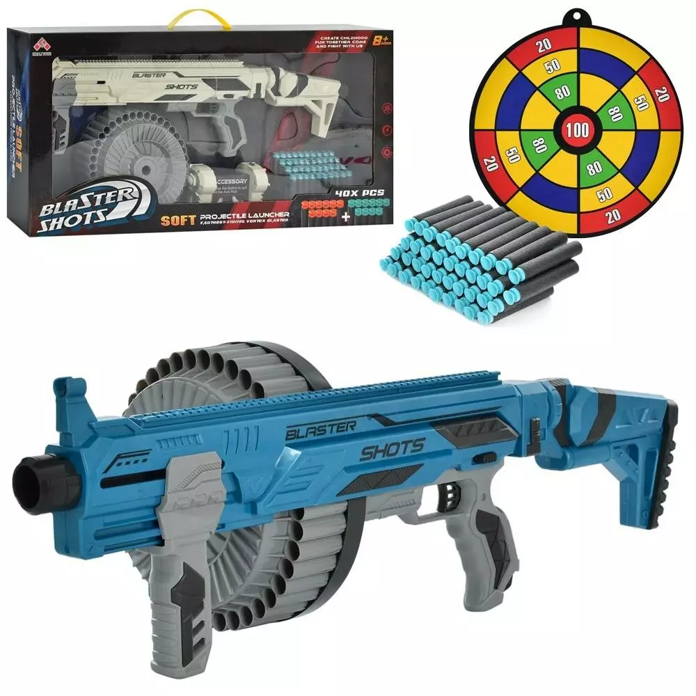 Автомат SB570 бластер, мішень, м'які кулі-присоски 40 шт., 2 кольори, кор., 73-35-10 см.
