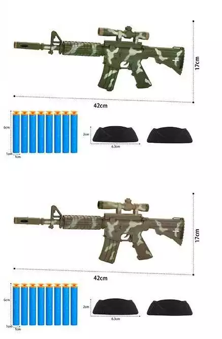 Автомат ТК - 15029 (120/2) 2 кольори, “TK Group”, м’які патрони з присоскою, підставка для мішені, на листі
