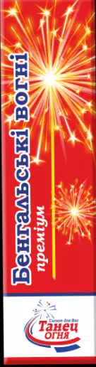Бенгальські свічки, або бенгальські вогні - це дуже популярний, улюблений і порівняно безпечний вид піротехніки. З точки зору пристрою, бенгальська свічка - це шматок металевого дроту, на який нанесений піротехнічний склад. Основною відмінністю бенгальських вогнів від основної частини піротехніки є можливість використовувати їх у закритих приміщеннях та на святкових столах. Властивості: Застосовувати можна у закритих приміщеннях та на відкритому повітрі. Легко підпалюються та стійко горять. При горінні мало виділяють дим. Спосіб застосування: Бенгальська свічка підпалюється сірником та тримається під нахилом на витягнутій руці до повного згоряння. Увага! Небезпечна зона - територія радіусом 50 см. Бенгальські вогні – незамінний атрибут святкування Нового Року!