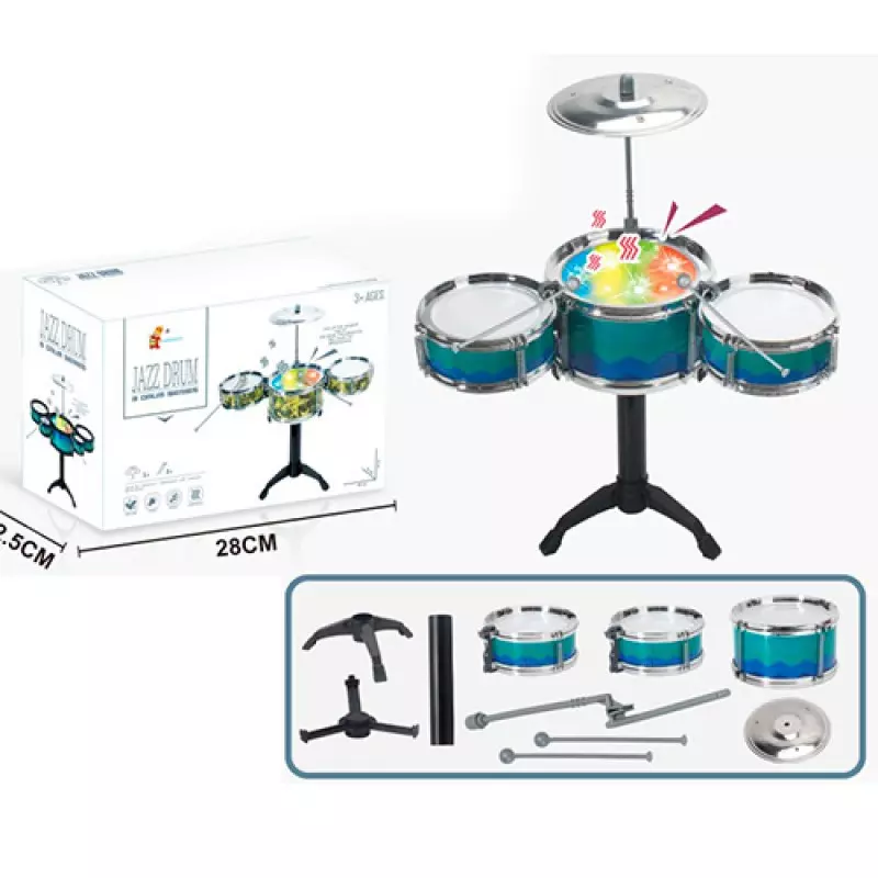 Барабанна установка D997-2 барабан 3 шт., палички 2 шт., муз., світло, бат., кор., 28-19-12,5 см.