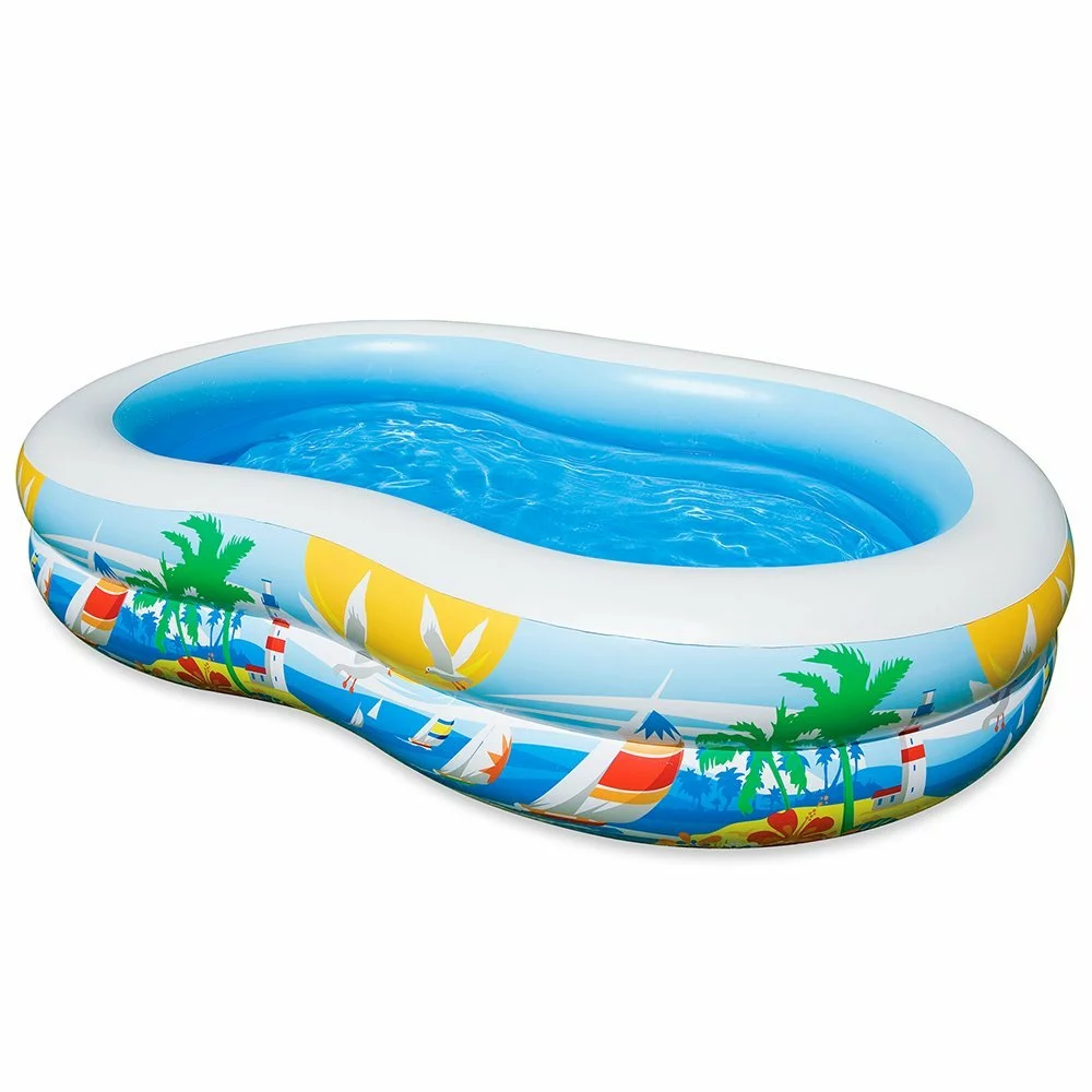 Незвичайний за формою басейн 56490 Intex доповнить інтер'єр Вашої дачі. Що може бути краще в суху, жарку, літню погоду, ніж зануритися в прохолоду басейну поруч з будинком? Басейн розрахований на кількох дорослих і дітей. Дитячий басейн "Райська Лагуна" має незвичайну, хвилеподібну форму. Борт басейну Интекс 56490 зроблений з 2 незалежних повітряних камер з яскравими зображеннями морського узбережжя на стінках. Широкі його борту дозволять дорослим присісти, а дітям грати на них. Басейн зручний у використанні: надувши його один раз, Вам зручно буде іноді міняти воду в ньому, користуючись спеціальним зливними клапаном. У висоту басейн Интекс 56490 має дві вертикальні роздільні камери з випускними клапанами. Характеристики басейну Intex 56490: Розміри: 262x160 см. Висота: 46 см. Обсяг: 572 л (при 80% наповненні) Товщина стінок: 0.25 мм Насос: отримується окремо. Вага в упаковці: 5 кг. Комплектація: ремкомплект Виробник: Intex Comfort-Rest