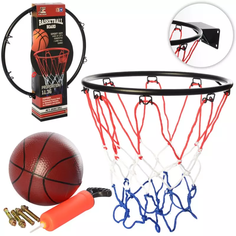 Баскетбольне кільце MR 0167 кільце (мет.), сітка, м'яч, насос, кор., 33-39-7 см.
