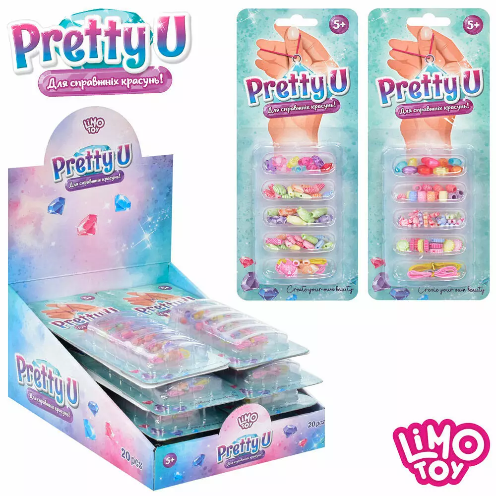 Бісер M 4983 UA намистини, підвіски, нитки, мікс видів, 20 шт. в диспл., лист, 27-21-13 см.