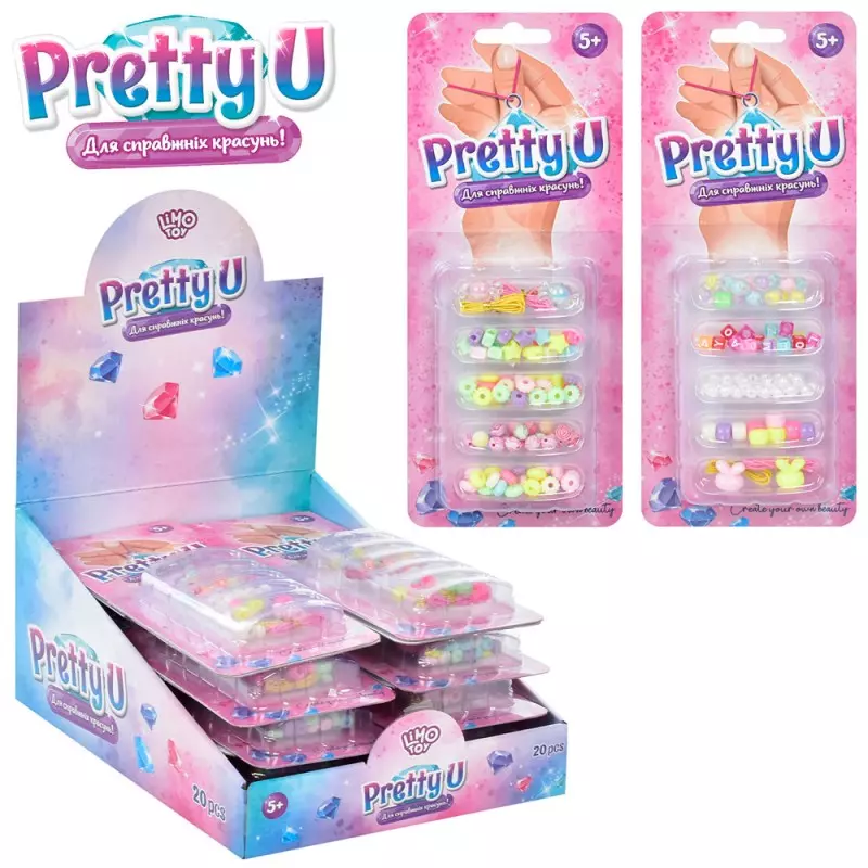 Бісер M 4985 UA намистини, підвіски, нитки, мікс видів, 20 шт. в диспл., лист, 27-21-13 см.