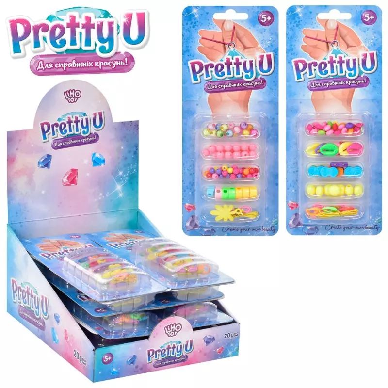 Бісер M 4989 UA намистини, підвіски, нитки, мікс видів, 20 шт. в диспл., лист, 27-21-13 см.