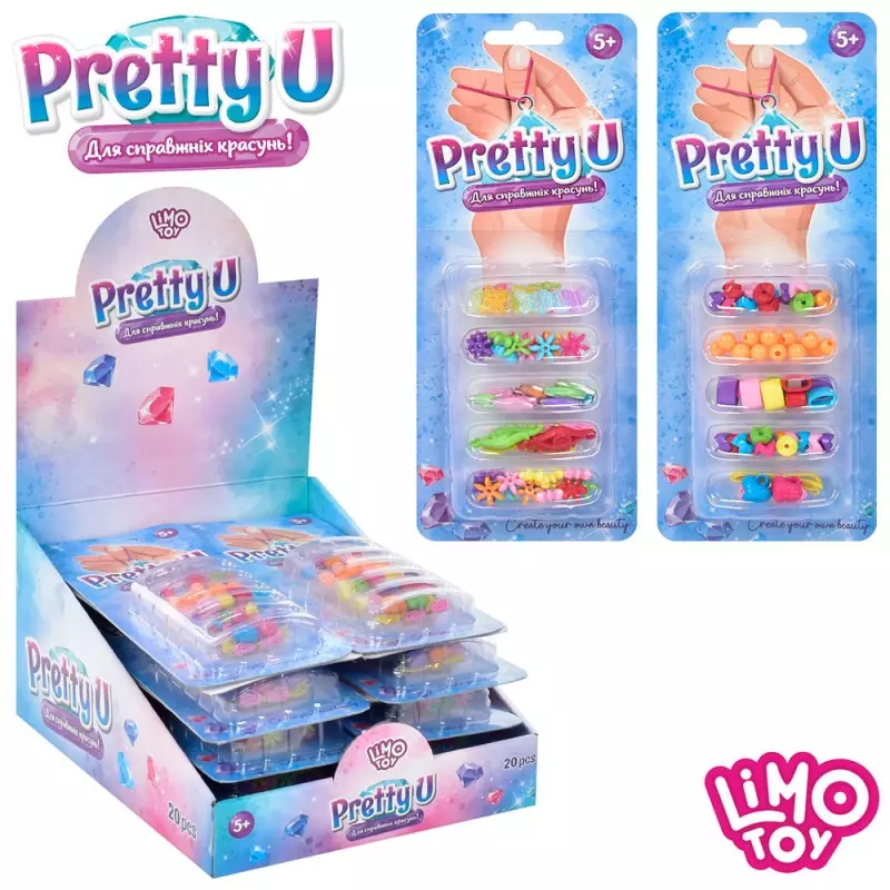 Бісер M 4991 UA намистини, підвіски, нитки, мікс видів, 20 шт. в диспл., лист, 27-21-13 см.