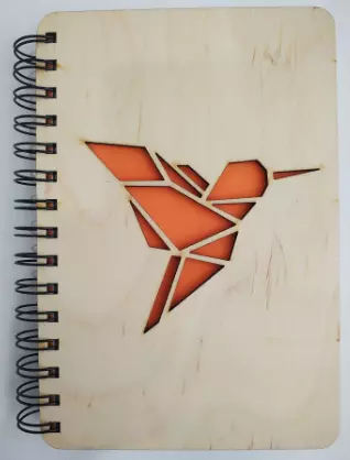 Блокнот дерев'яна обкл.,висічка,ф А5, бок.пруж.100арк."Колібрі"вишня
