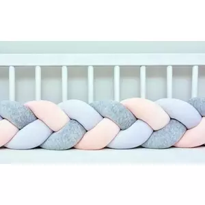 Бортик в кроватку Хатка Косичка Белый-Персиковый-Серый 180 см (половина кроватки)