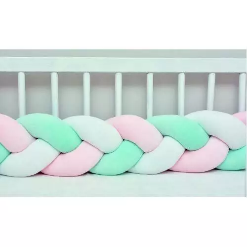 Бортик в кроватку Хатка Косичка Белый-Розовый-Мятный 240 см (на три стороны)