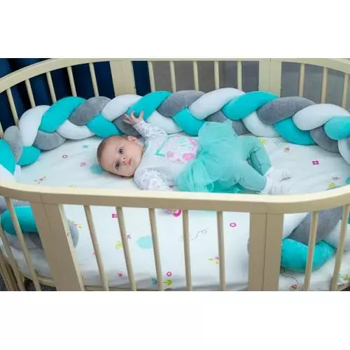 Бортик в кроватку Хатка Косичка Белый-Серый-Мятный 120 см (одна сторона кроватки)