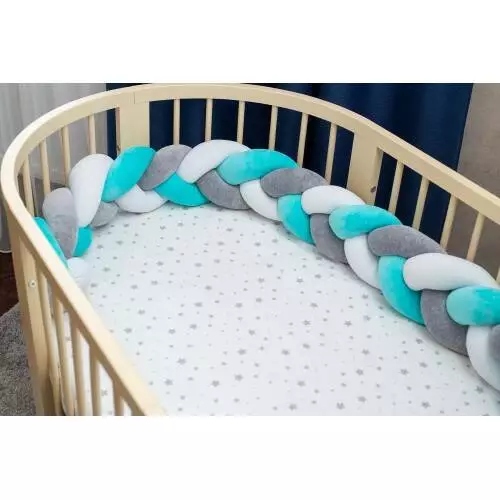 Бортик в кроватку Хатка Косичка Белый-Серый-Мятный 180 см (половина кроватки)
