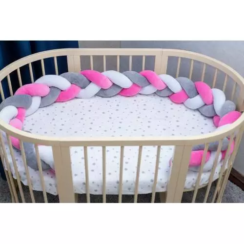 Бортик в кроватку Хатка Косичка Белый-Серый-Розовый 360 см (по всему периметру кроватки)