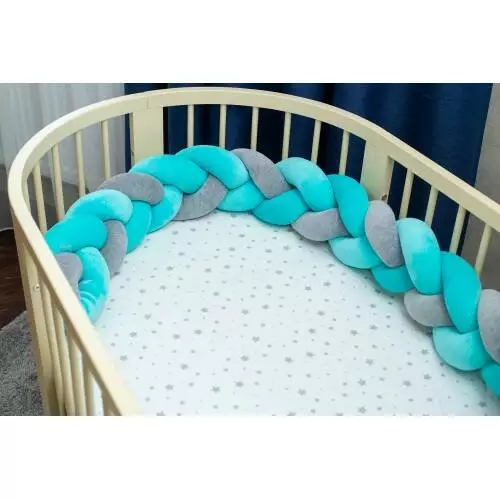 Бортик в кроватку Хатка Косичка Мятно-серый 240 см (на три стороны)