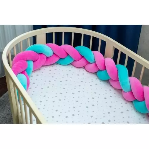 Бортик в кроватку Хатка Косичка Розово-мятный 360 см (по всему периметру кроватки)