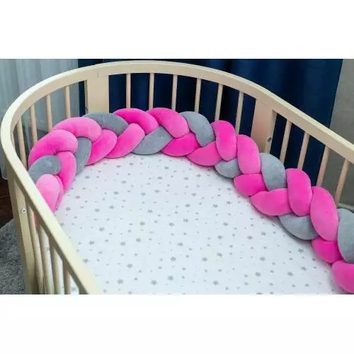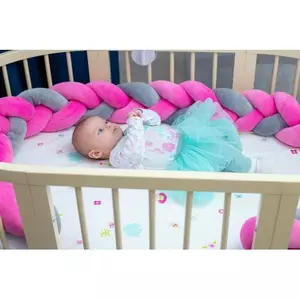 Бортик в кроватку Хатка Косичка Розово-серый 240 см (на три стороны)