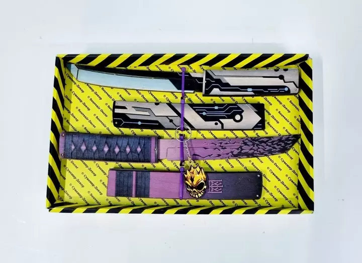 Набір сувенірних ножів - Legacy транзистор і Tanto рестлес. Матеріал: фанера. Довжина ножа – 28 см. Чудовий подарунок-сувенір, у комплекті є дармовис. Ножі дерев'яні, якісні та міцні. Не заточені, гострі частини закруглені та зашліфовані, повністю безпечні. Для дітей віком від 6 років.