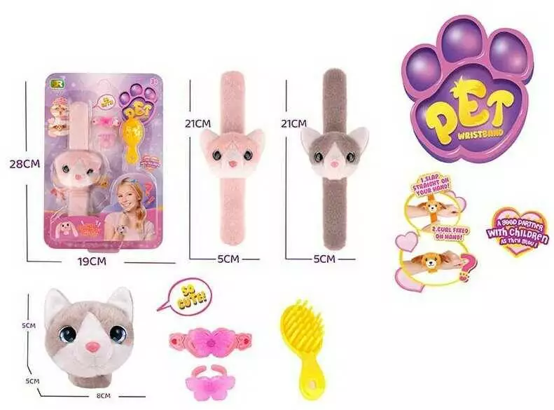 Браслет DR 5090 (120/2) ""Котик"", “Pet Wristband”, 2 кольори, плюшевий браслет, аксесуари, на листі