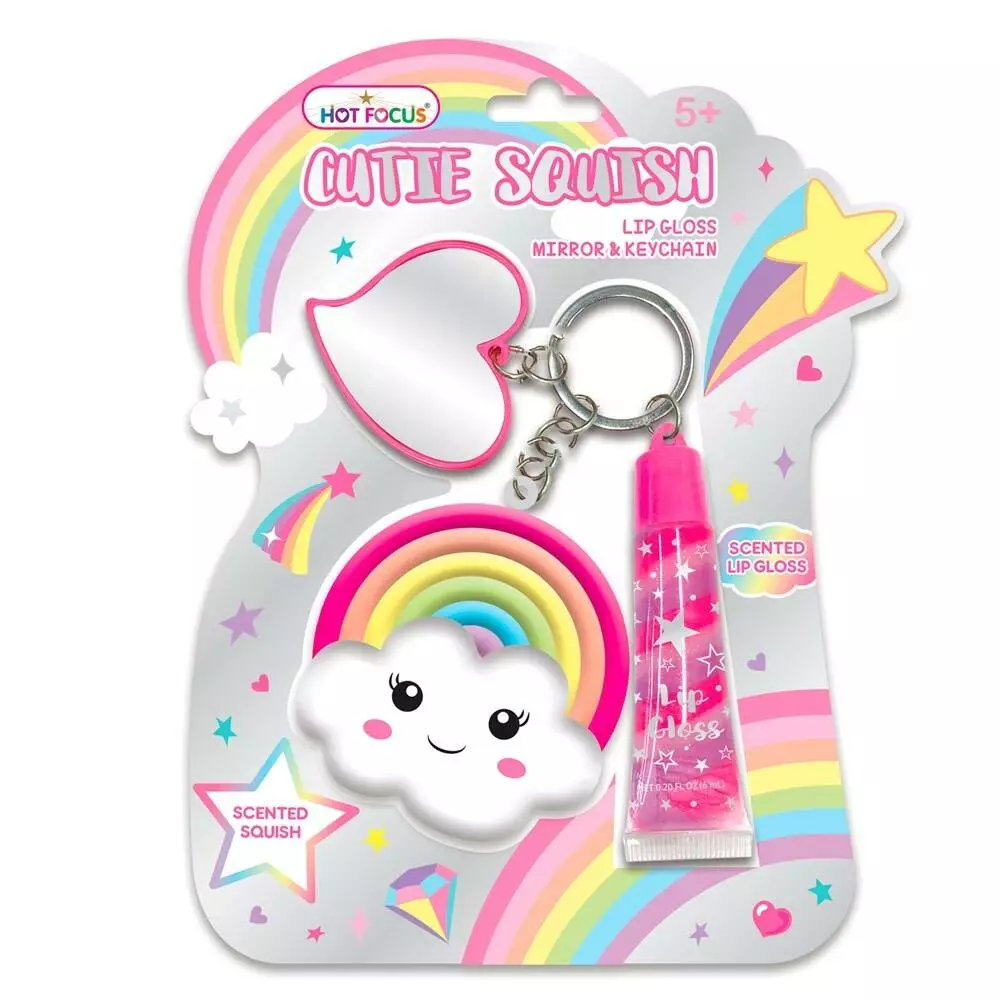 Брелок 092 RB HOT FOCUS хмаринка-райдуга, блиск для губ, дзеркало, бліст.