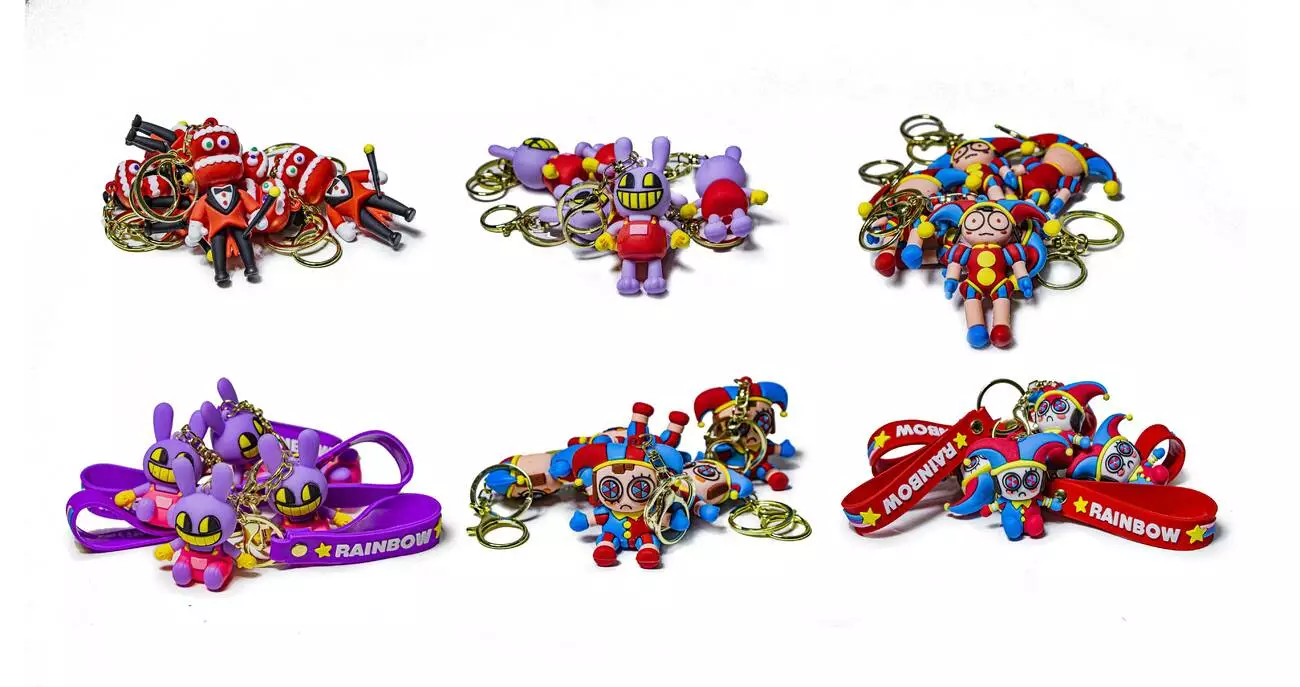 <p><em><strong>Брелок героев «Удивиительный цифровой цирк» </strong></em></p><br /> <p>Цена за 1 штуку</p><br /> <p>Американско-австралийский компьютерный анимационный веб-сериал, созданный художницей-аниматором Купером Смитом Гудвином и спродюсированный компанией Glitch Productions.</p><br /> <p>Можно использовать как брелок на ключи, прицепить его к рюкзаку или использовать как подвеску на мобильный. Для этого в комплекте идет маленький ремешок, с помощью которого Вы сможете прикрепить игрушку к ключам.</p><br />