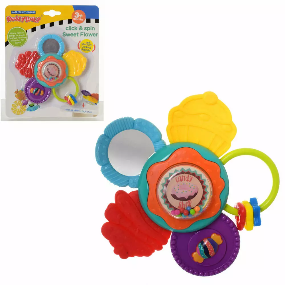 Брязкальце 0884 квітка, на присосці, прорізувач, дзеркальце, 20-24-5,5 см.