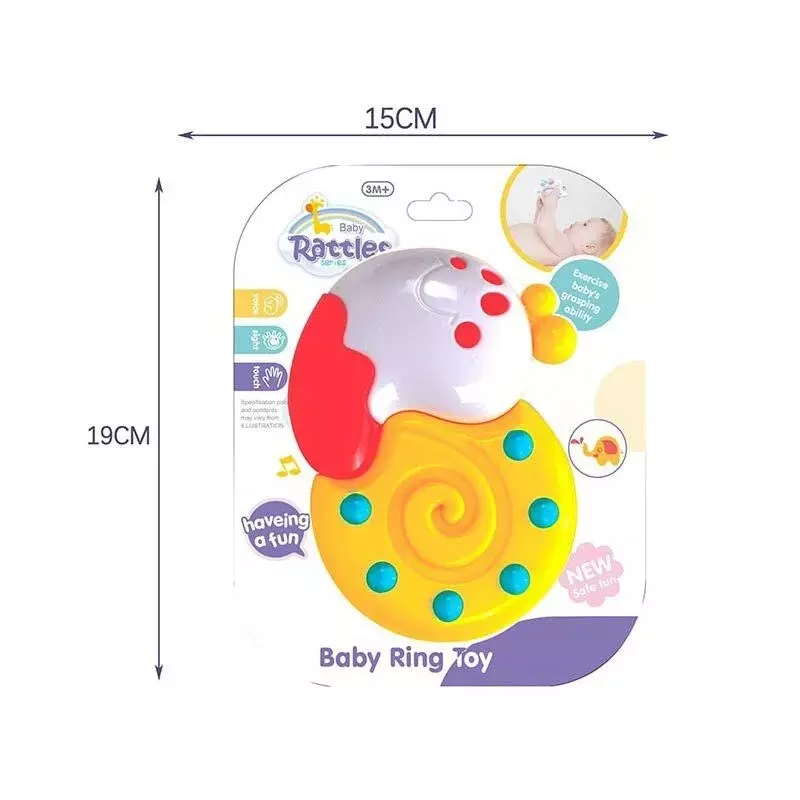 Кольоровий равлик підготував для малечі веселу забавку, яка йому неодмінно сподобається. Вона здатна швидко привернути увагу дитини та надовго її затримати. Малюк із задоволенням буде розглядати іграшку та отримувати яскраві візуальні та тактильні відчуття. Особливості: - брязкальце виконане у вигляді равлика; - має вдале поєднання яскравих кольорів; - виконане з первинного пластику, безпечного для дитини; - петелька для зручної фіксації брязкальця на поверхню; - іграшка актуальна для дітей віком від 3 місяців.