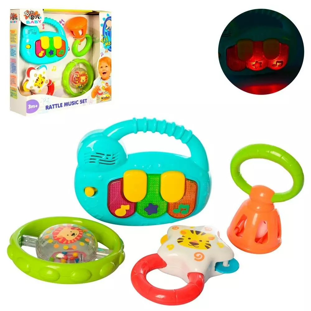 Брязкальце 3130-NL 4 шт., від 11 см., 1 шт. - муз., світло, бат., кор., 27-24-7 см.