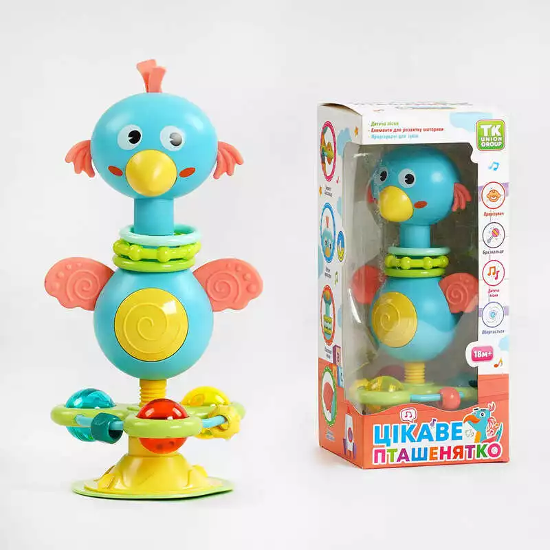 Брязкальце ""Цікаве пташенятко"" 45712 (60) ""TK Group"", ОЗВУЧУВАННЯ УКРАЇНСЬКОЮ МОВОЮ, пташка, присоска, прорізувач, мелодії та пісні, в коробці