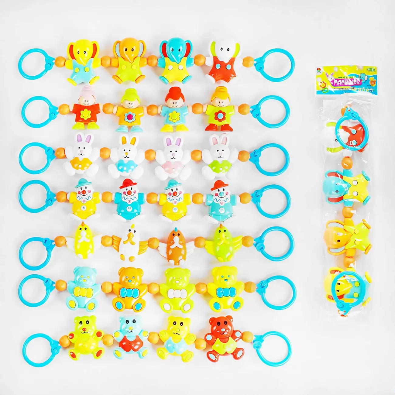 “Малючок” - потішне брязкальце-відвіска для дитячого візочка або ліжка. Симпатичні іграшки, що поєднані між собою еластичною мотузочкою, даруватимуть малечі радісні емоції та гарний настрій на прогулянках та вдома. Особливості: - брязкальце складається з 4-х різнокольорових елементів, всередині яких приховані елемент, що гримлять; - бджілки поєднані резинкою, завдяки чому брязкальце можна розтягувати; - по обидва боки підвіски розташовані зручні тримачі із застібками; - іграшка виготовлена з безпечного для здоров’я дитини пластику; - приємна кольорова гама; - брязкальце сприятиме розвитку уваги, сенсорного, слухового та зорового сприйняття, а також дрібної моторики.