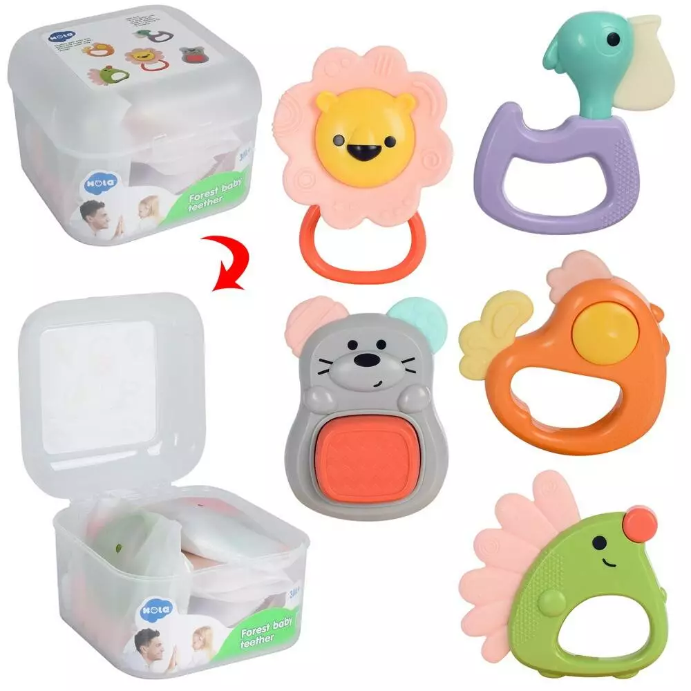 Брязкальце E318A тварина, 5шт., прорізувач, пласт.ящик, 14,5-15,5-10,5см.